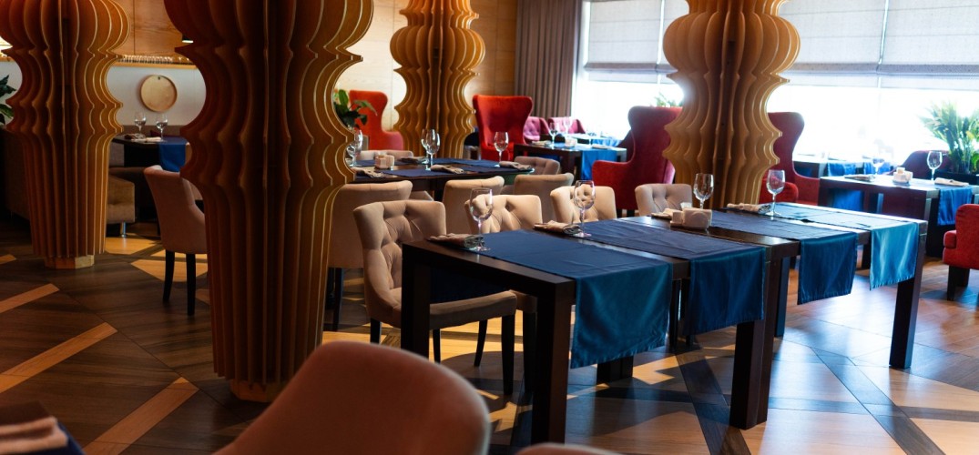 Основной зал с вместимостью до 80 гостей отлично подойдёт для Ваших банкетов в любое время года! Просторный зал позволяет разместить столы так, как Вам будет удобно. Шикарный вид из окон на фонтанную площадь и обновленную детскую городскую площадку. На территории ресторана есть удобная круглосуточная парковка для наших гостей. Учтём все Ваши пожелания и сделаем отдых незабываемым!